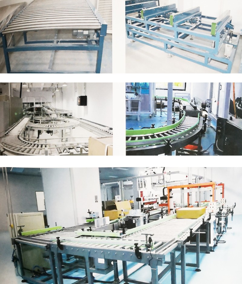 以不銹鋼/碳鋼折彎板為機身,利用鏈條或多楔帶傳動輥筒進行直線、轉(zhuǎn)彎輸送,轉(zhuǎn)彎角度多種格式。