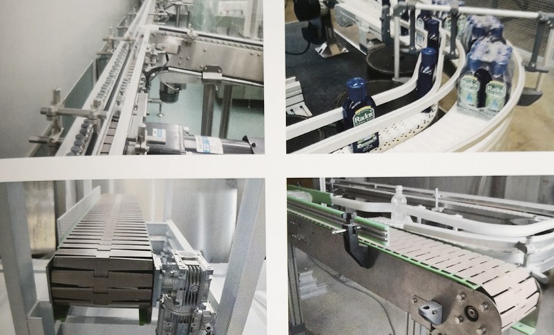 該輸送機機身鏈板整體材質(zhì)為不銹鋼,主要適用于玻璃瓶,以及重載等場景,鏈條寬度從82.6mm至304.8mm等多種規(guī)格,最小轉彎半徑460mm。